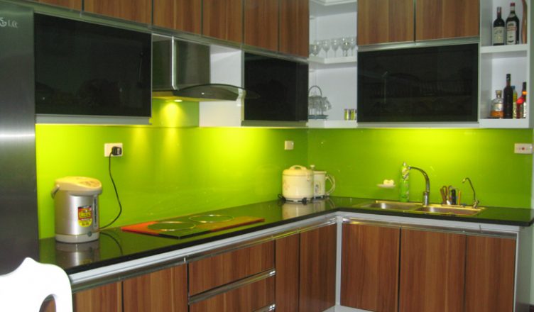 - Kính màu ốp bếp